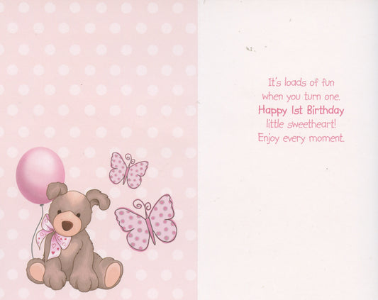• Happy 1st Birthday - Girl - Card and envelope