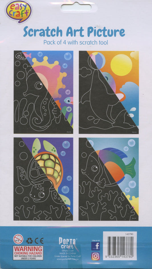 Scratch Art Picture - Sea Theme - Pack of 4 with scratch tool