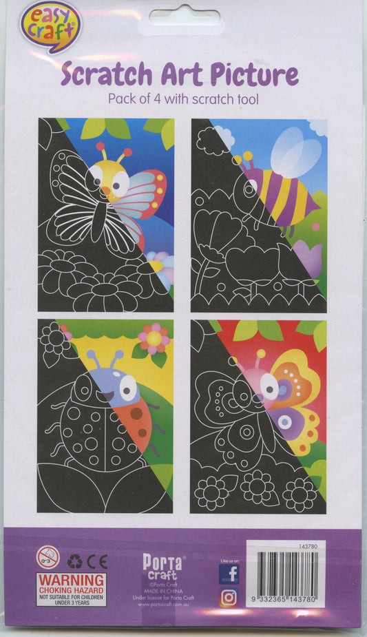 Scratch Art Picture - Insect Theme - Pack of 4 with scratch tool