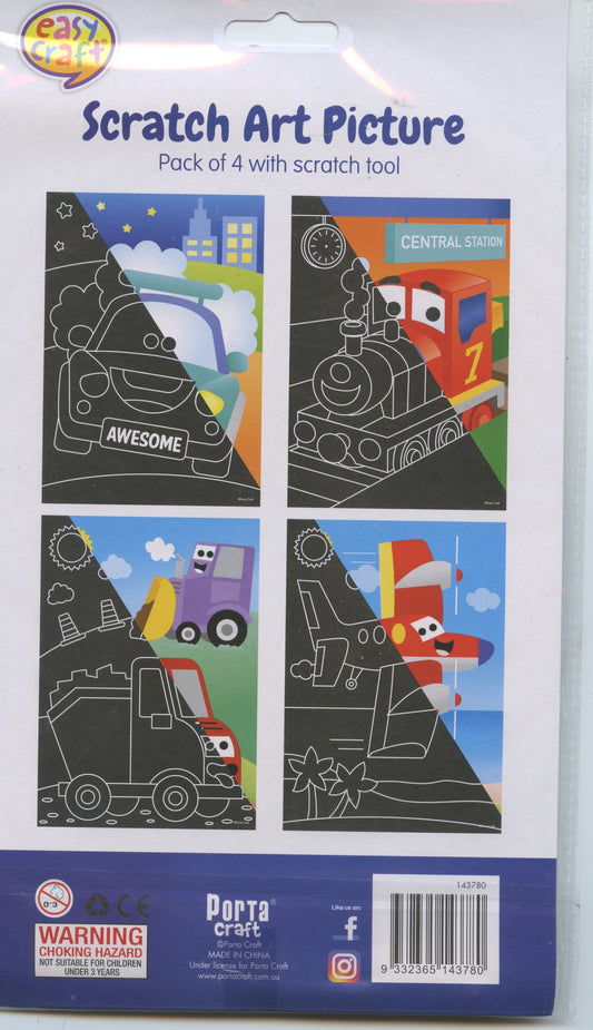 Scratch Art Picture - Transport Theme - Pack of 4 with scratch tool