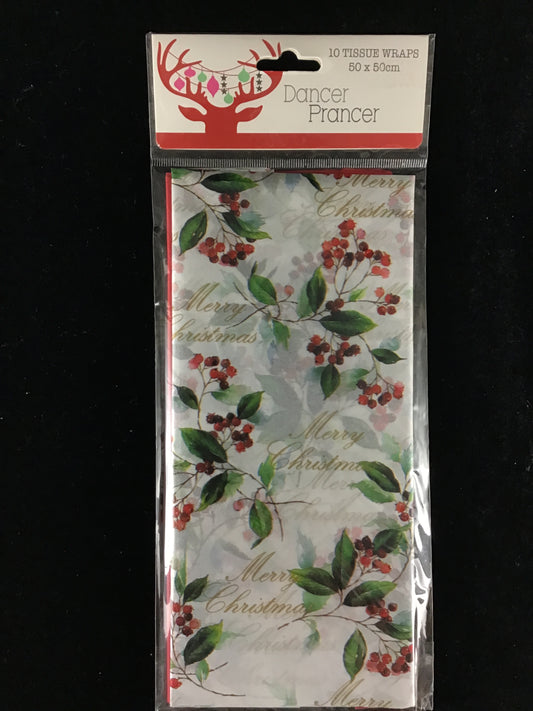 • Christmas Tissue Paper 50x50cm - Red x 5, Holly & Ivy x 5
