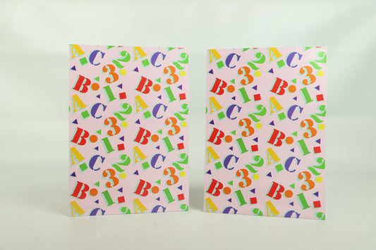Wrapping Paper Sheets 2x ABC 123 Girl Theme 70cm x 50cm