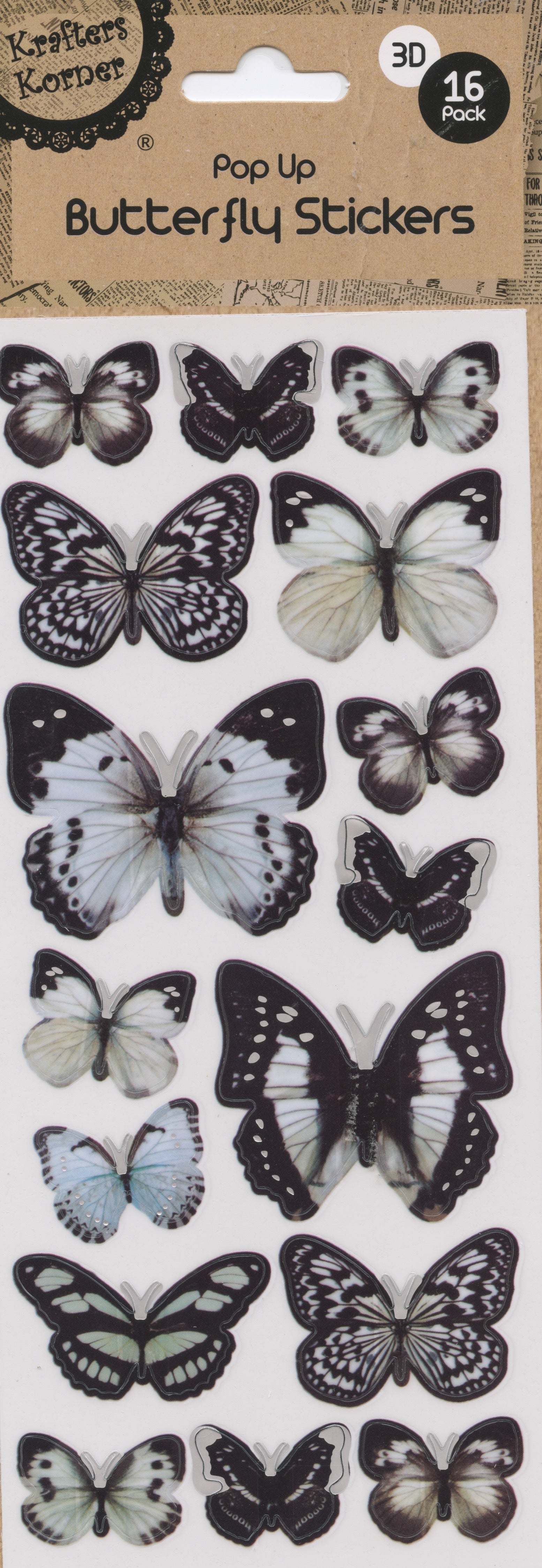 3D Butterfly Pop Up Stickers - White/Black/Grey - 16 pk