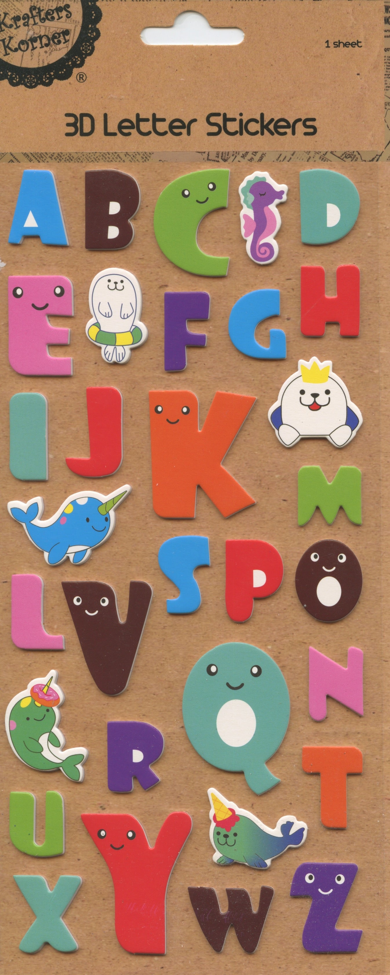 3D Colourful Letters Sticker - 1 Sheet - 32 pk - Pack #11