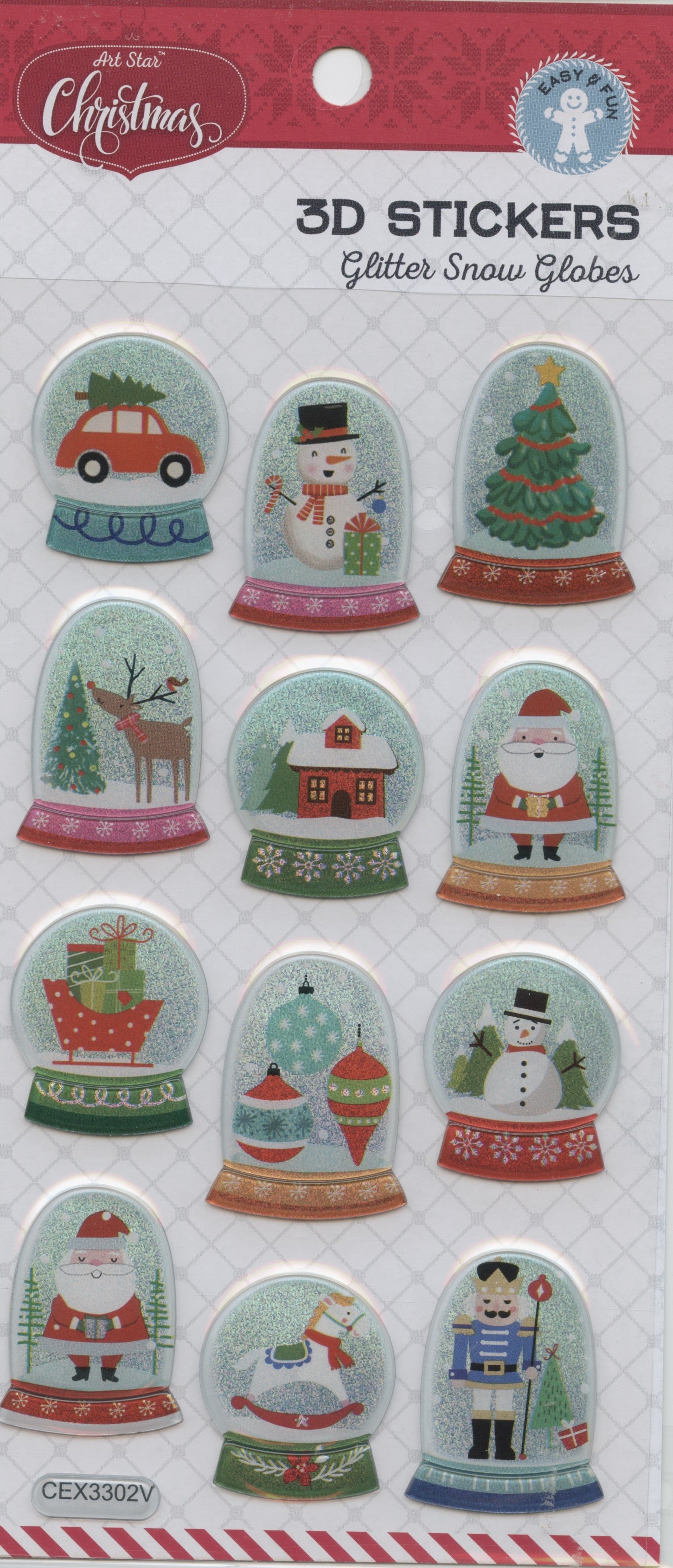 3D Stickers Christmas - Glitter Snow Globes - 12pc