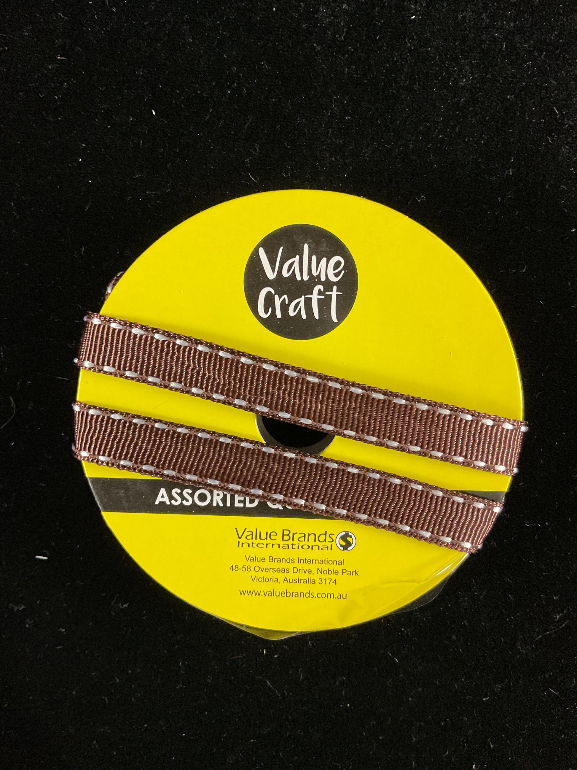 Brown Grosgrain Stitched Ribbon - 10mm x 3m