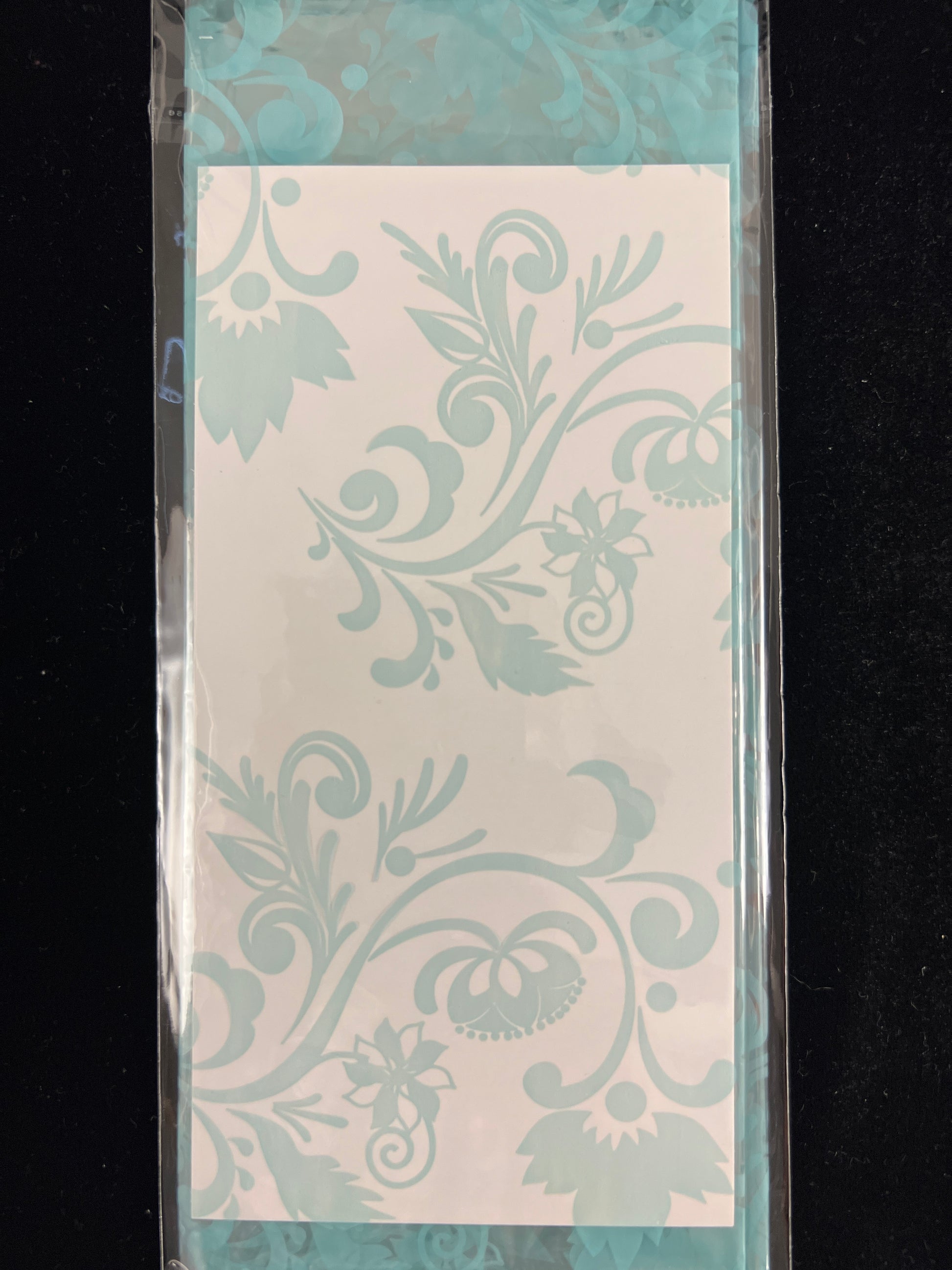 Cellophane - Clear with Aqua Floral design - 1 sheet - 70cm x 50cm