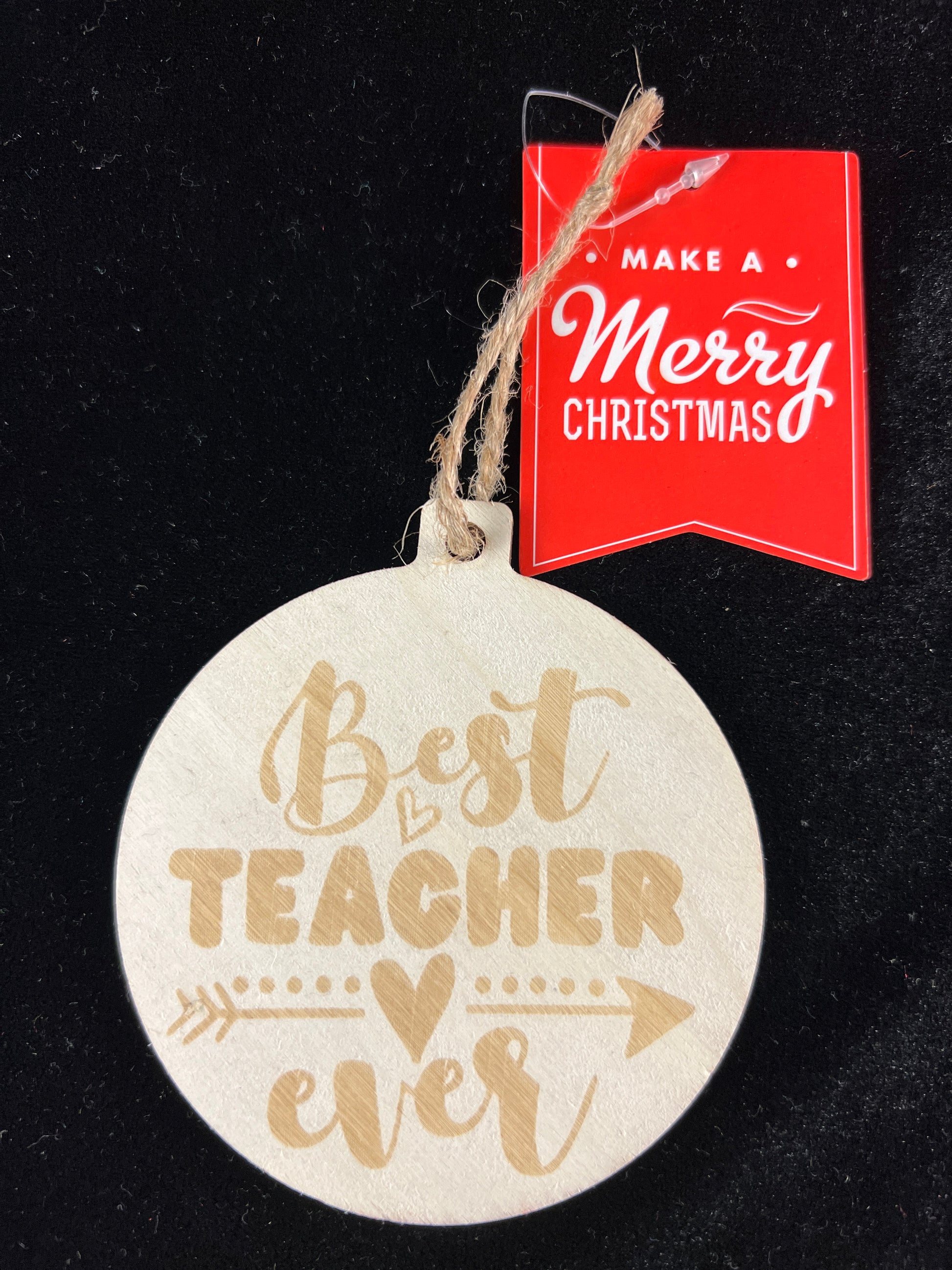 Christmas Hanging Plywood Ornament- Best Teacher ever