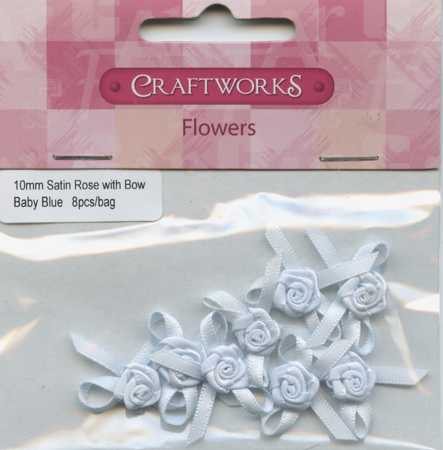 Satin Bow with Rose 10mm - Baby Blue - 8 pack