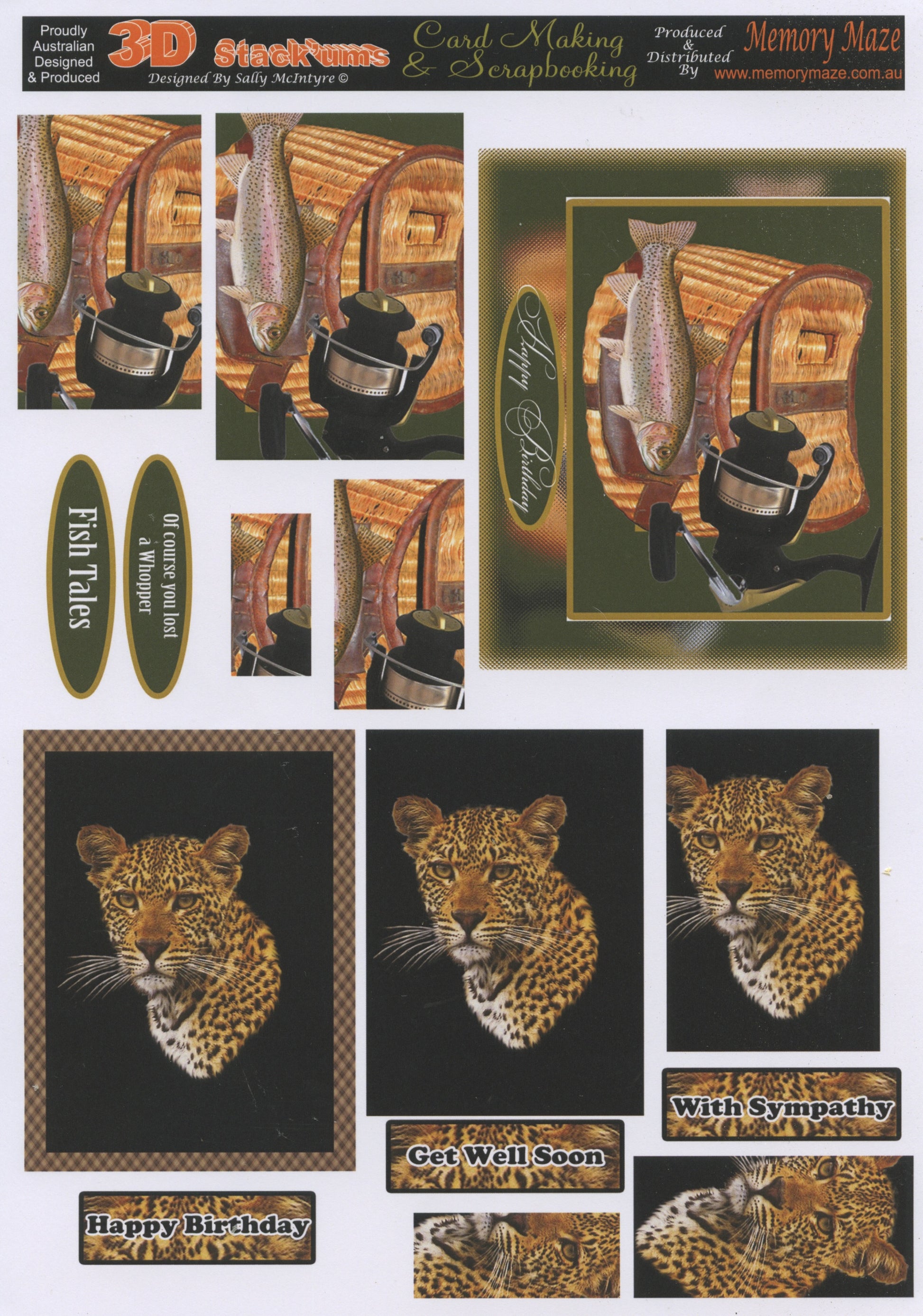 3D Cuttables - Fishing & Leopard Theme & Mixed Wording - 1 sheet