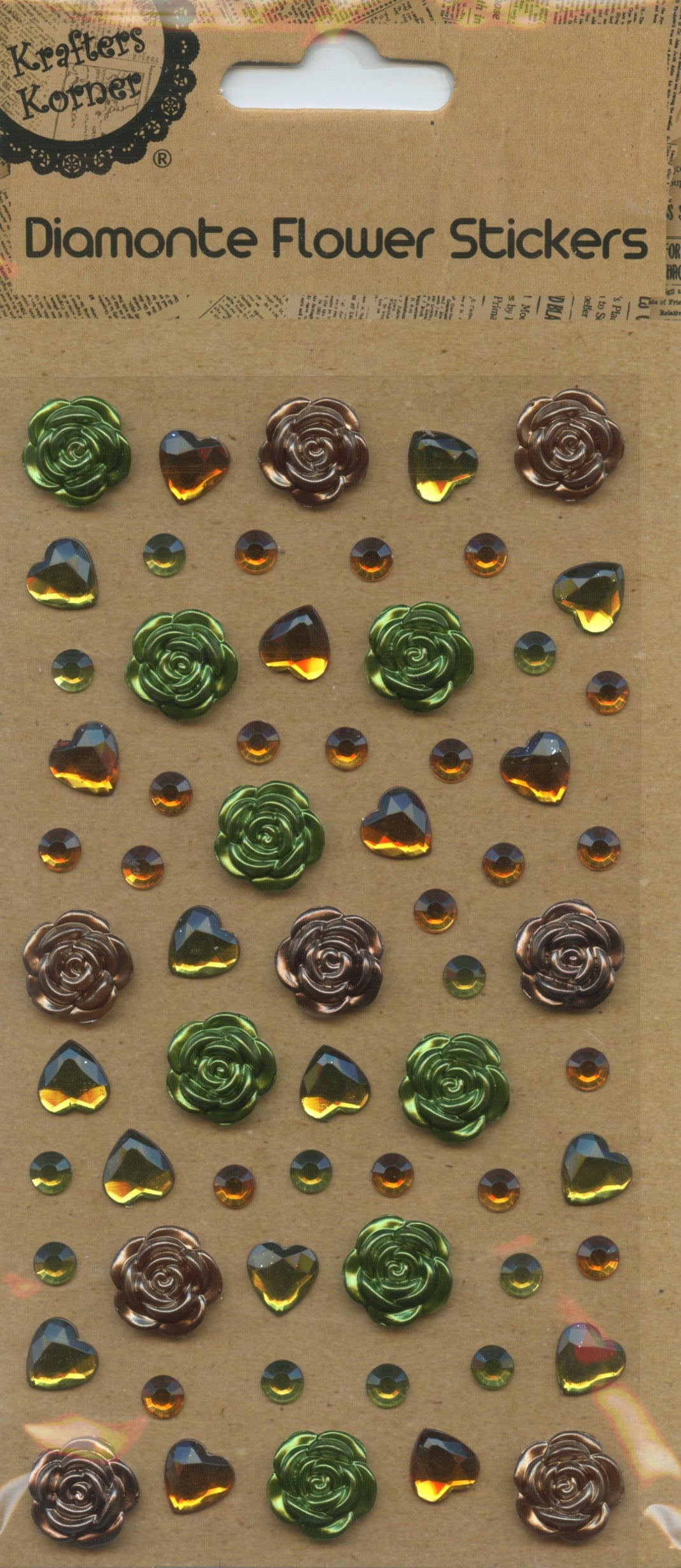 Diamanté Flower/Heart/Circle - Adhesive Stickers - Autumn tones