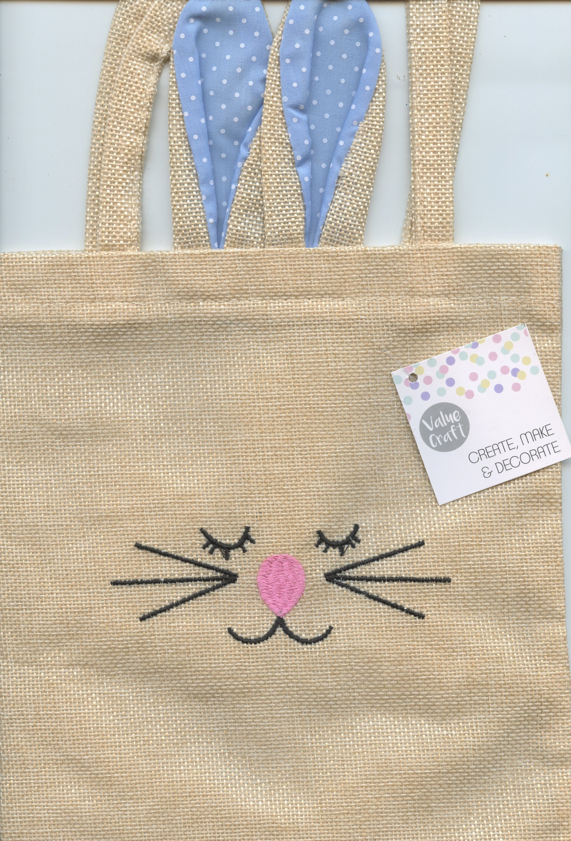 Easter Bag - Hessian with Bunny Ears and Face- Blue - 1pk