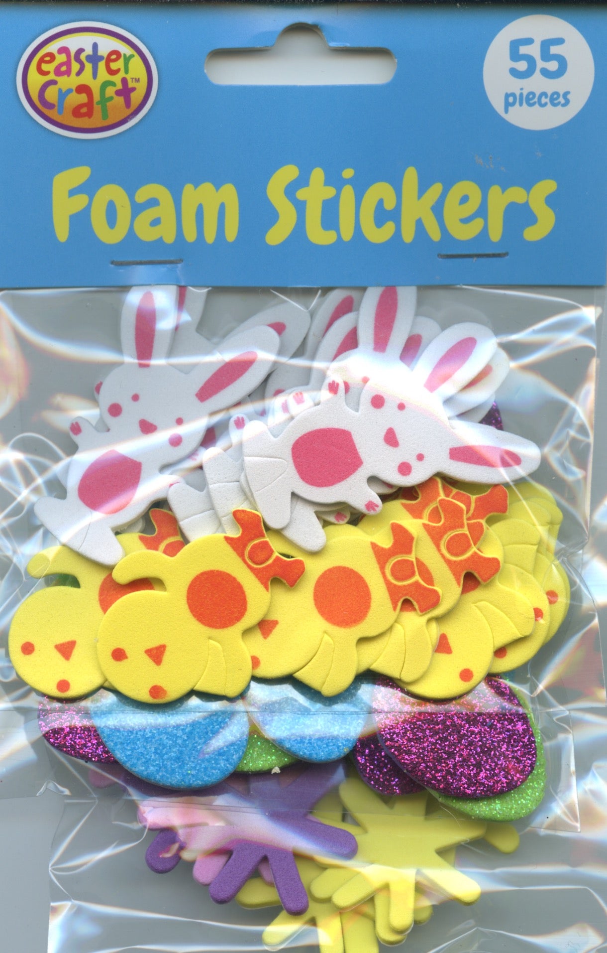 Foam Bunnies/Chicks, Glitter Eggs and Flowers Adhesive Stickers - 55 pk