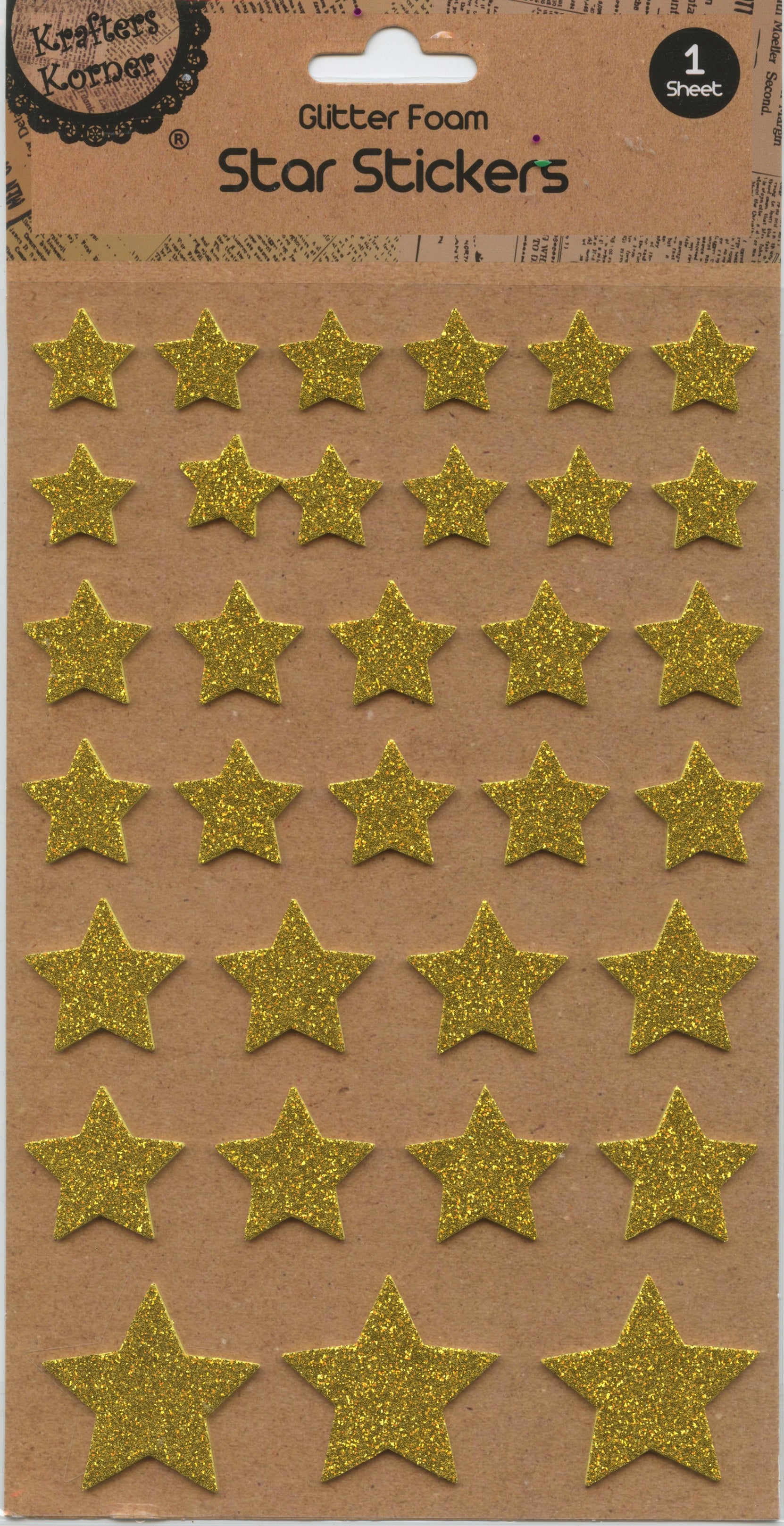 Glitter Foam Star Stickers - 1 x Silver and 1 x Gold