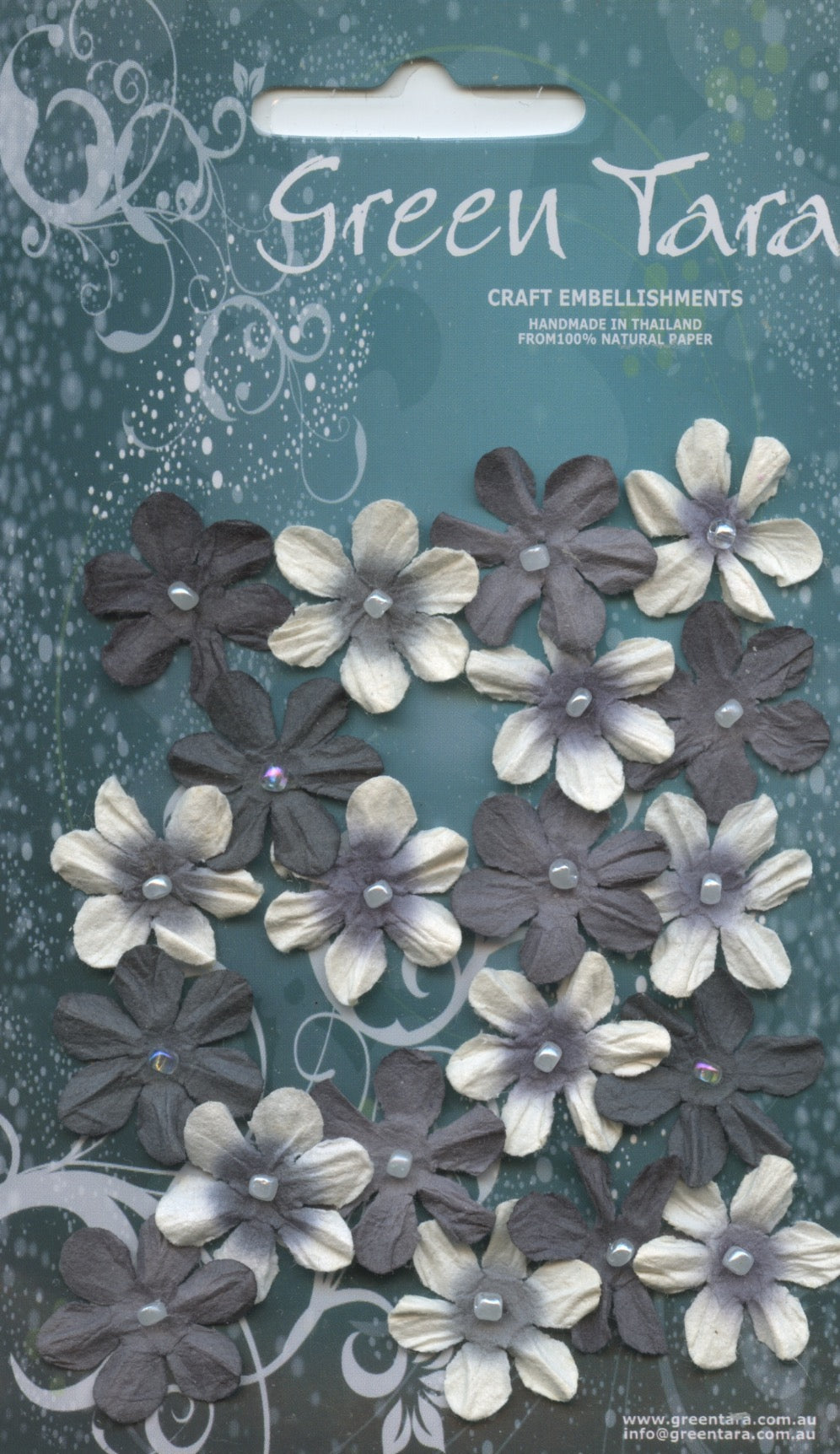 Mini Flowers - Black/Greys/White with Pearl centre - 20 pk