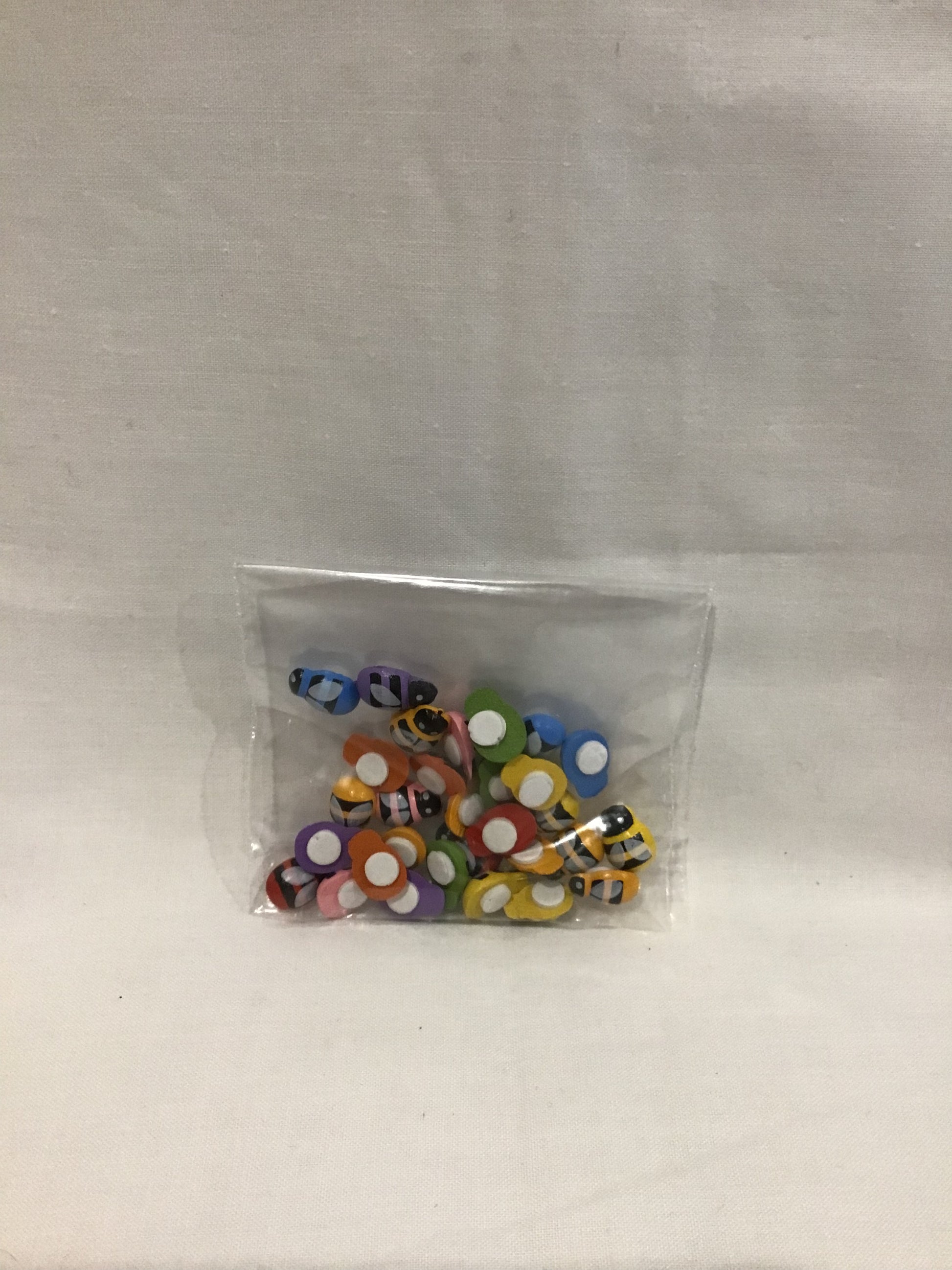 Mini Wooden Bees - 7 Colours - Adhesive - Pack of 30