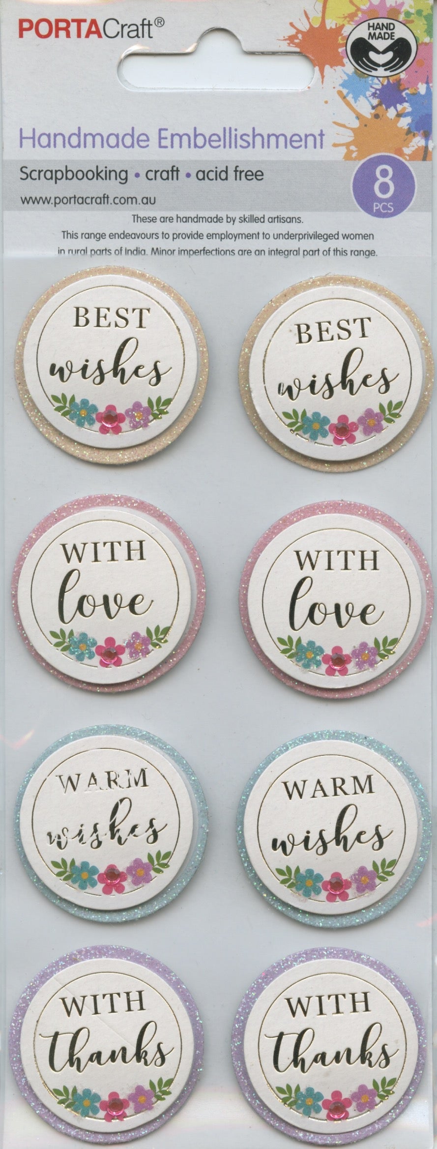 Porta Craft Handmade Embellishments - Word Sentiments - 8pc