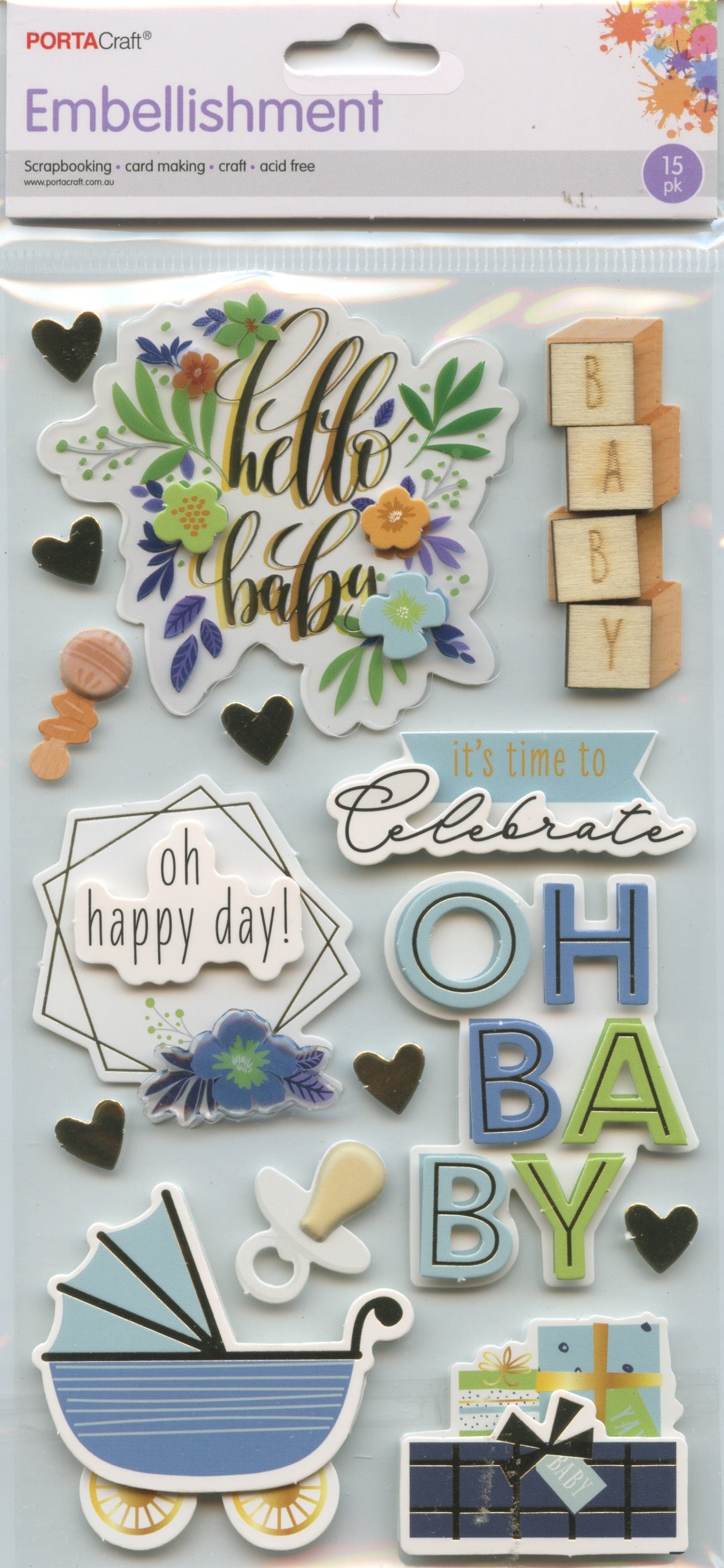Porta Craft Handmade Embellishments - Oh Baby Boy - 15pc