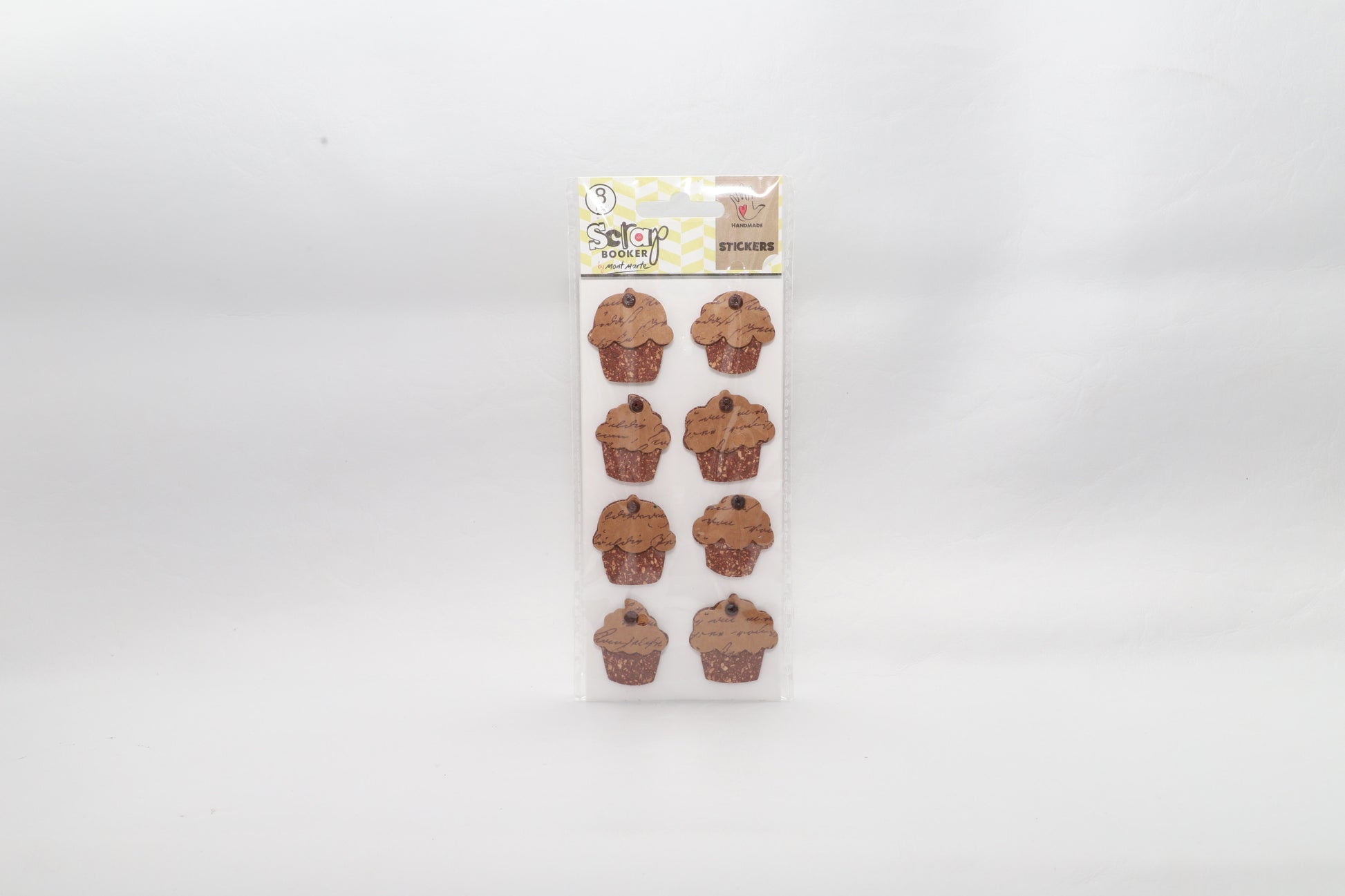 Scrap Booker Handmade Embellishment Self Adhesive Cork and Kraft Cupcakes 8 pc