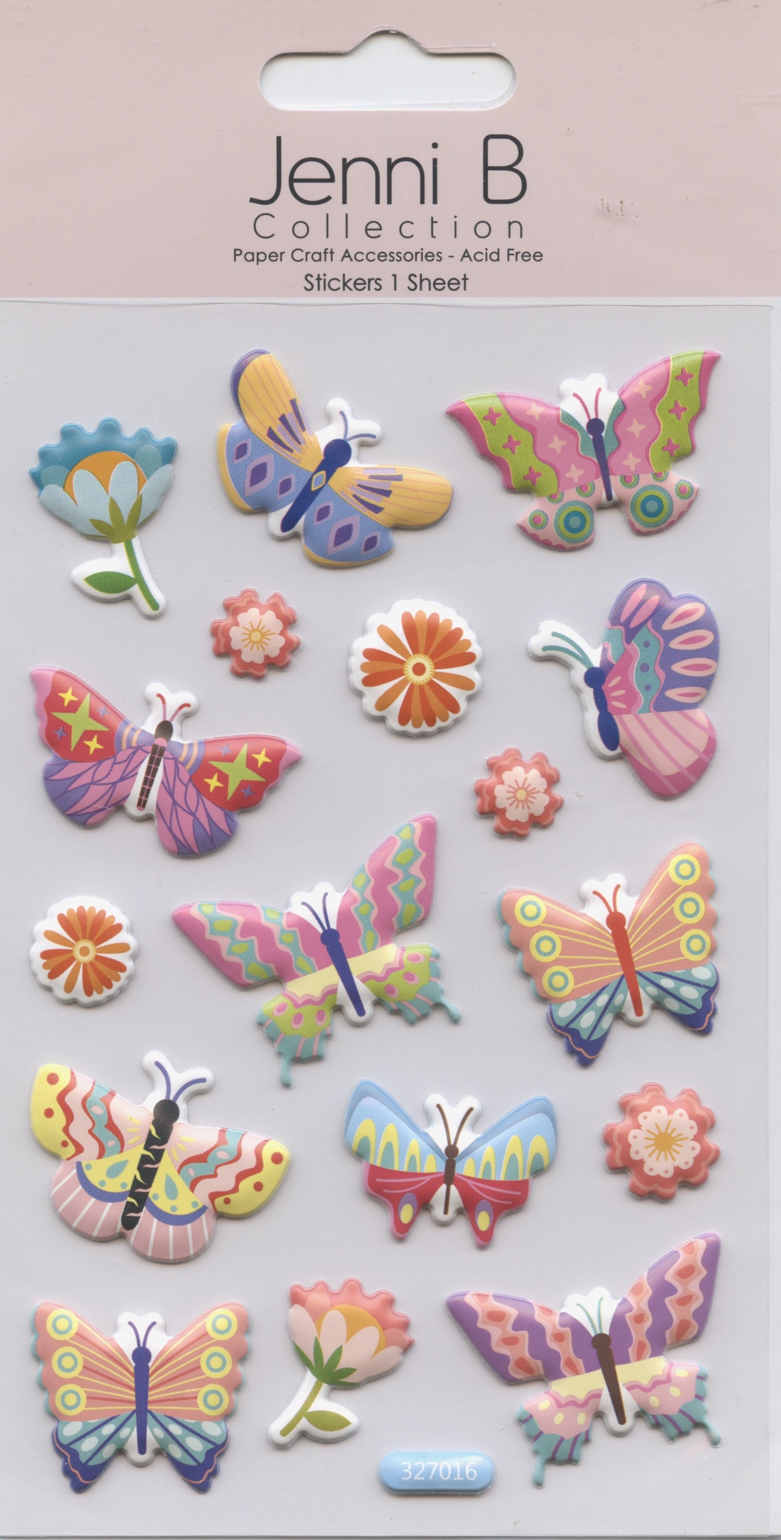 Jenni B - Butterflies and Flowers - Puffy Stickers - 1 Sheet - 17 pcs