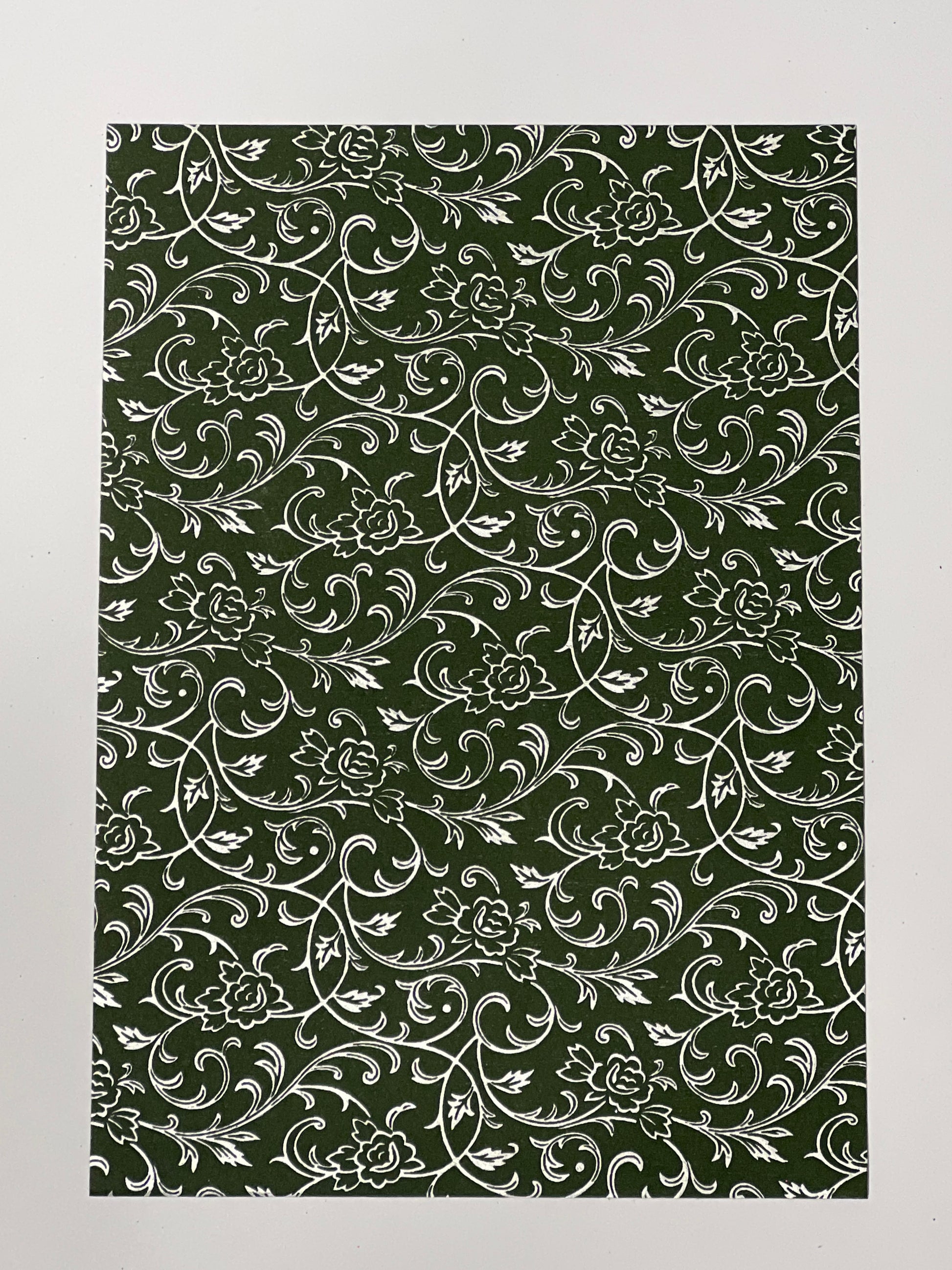 Specialty Paper 3x A4 Handmade (lightweight) Dark Green/White Paisley