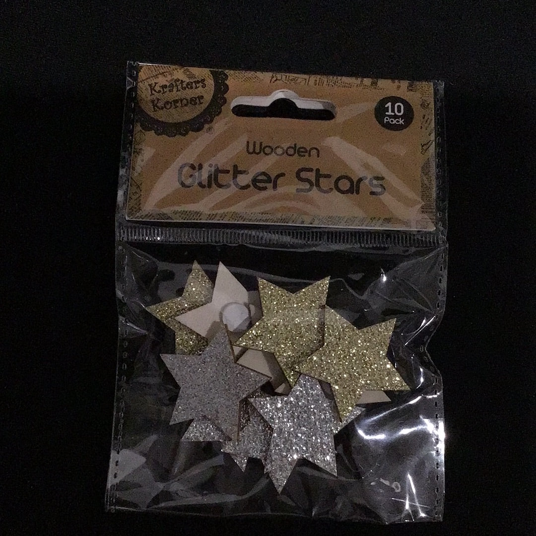 Wooden Glitter Stars - Gold and Silver - 10 pack