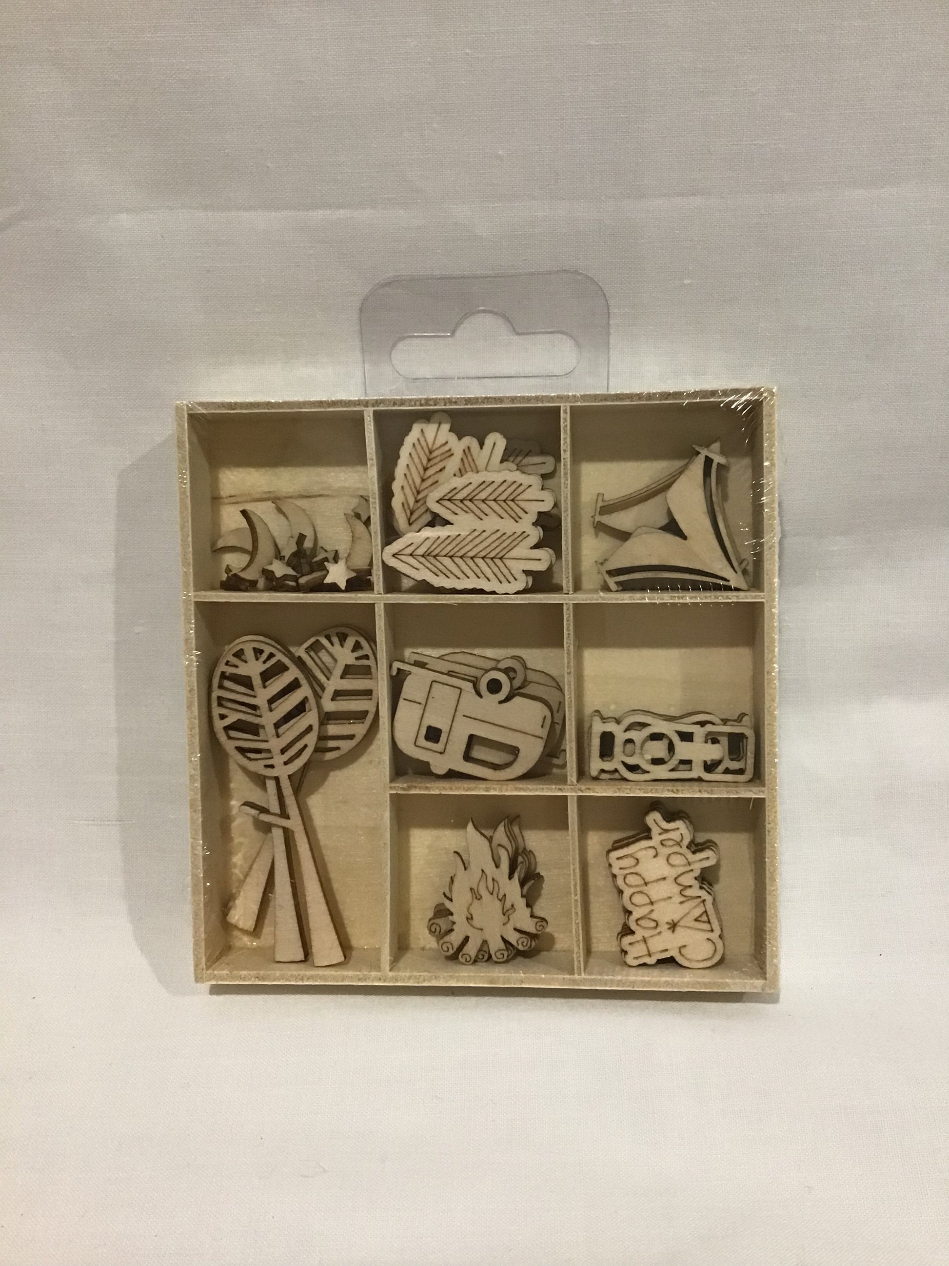 Wooden Mini Accent Cut-outs - Happy Camper - 8 designs - 40 pc